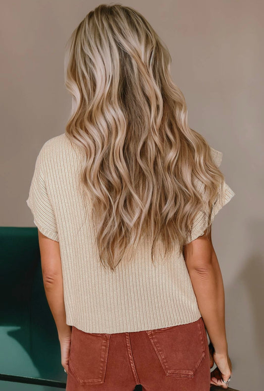 Sold outOatmeal Short Sleeve Sweater Top