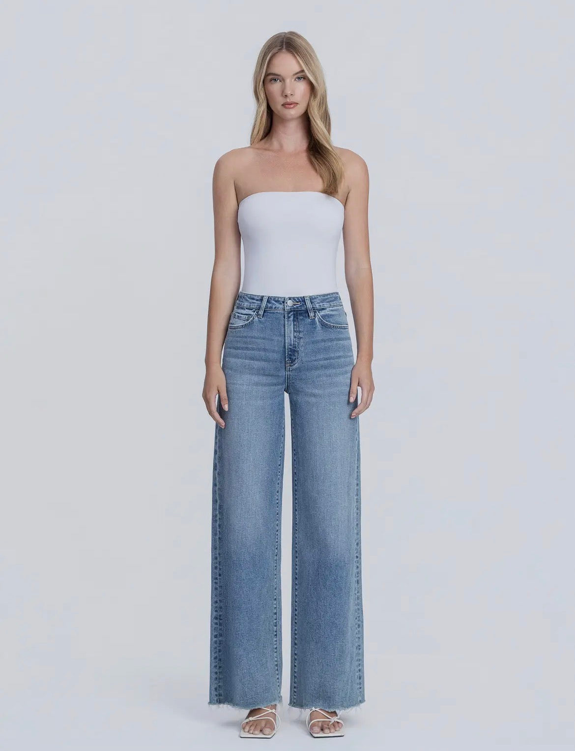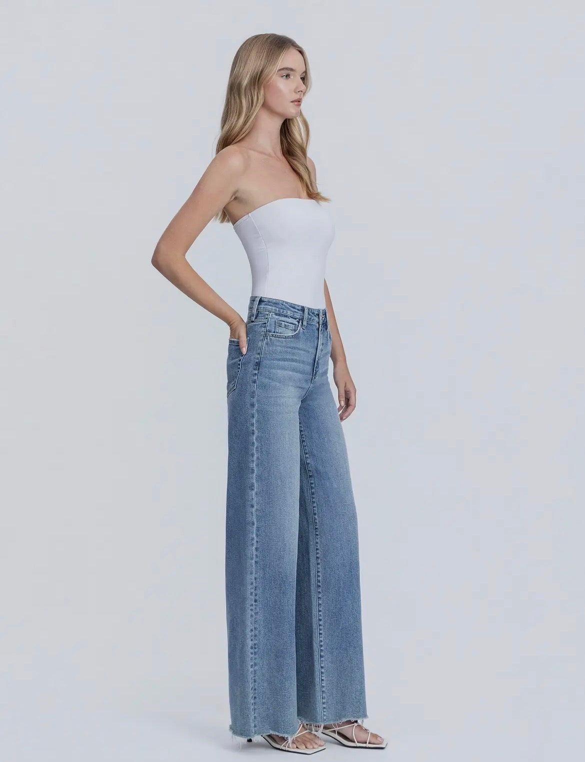 32 inch inseam. High Rise. Wide leg. True to size